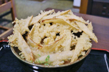 どんぶりを覆うようにかぶせられたごぼう天は