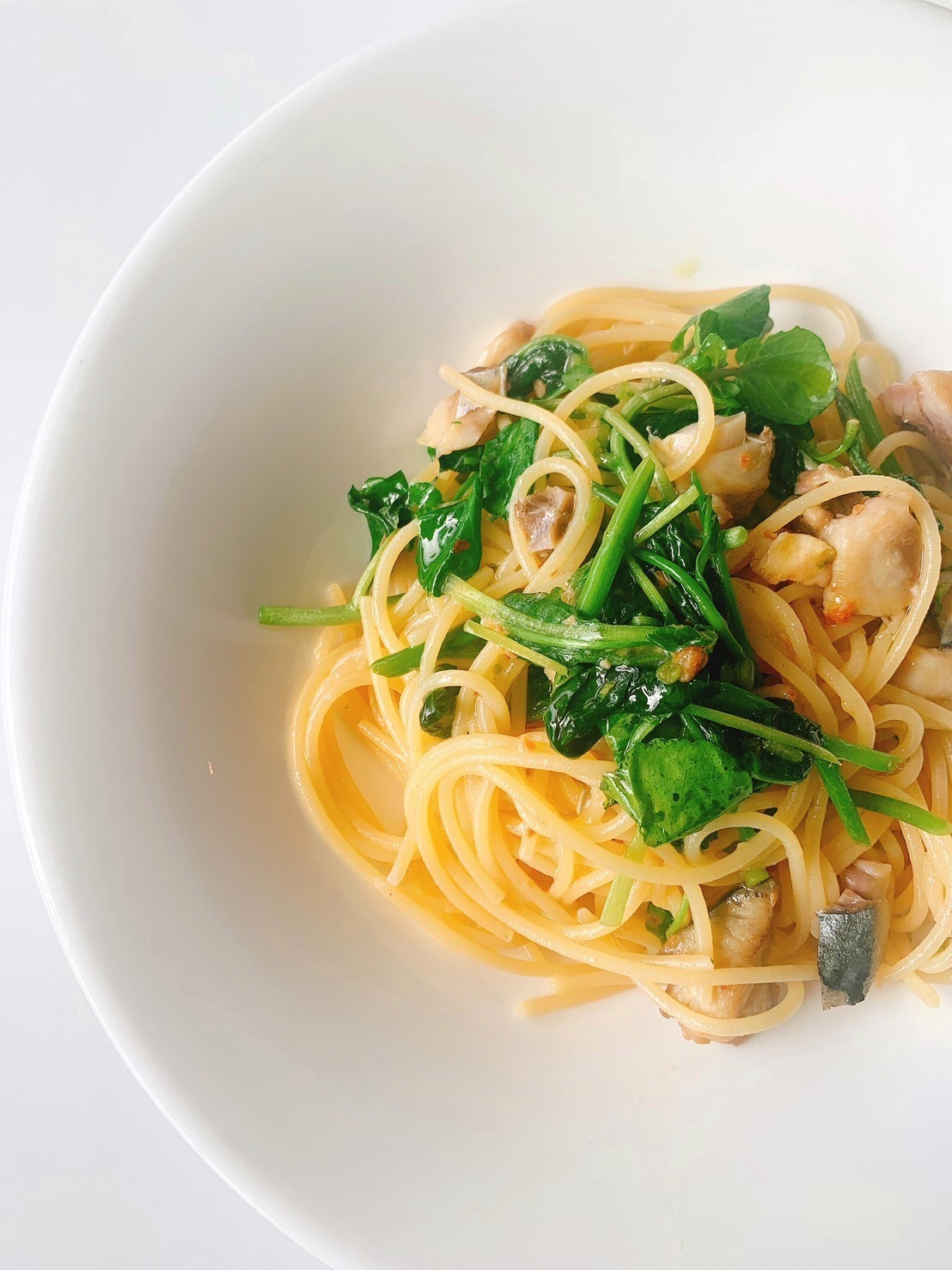 「サバと空心菜のペペロンチーノ」