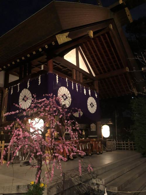 夜に訪問したので、夜桜見られてラッキーでした。