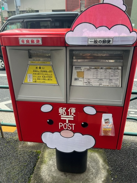 根津の郵便局前にかわいいサンタポストがいたので、おすそ分けどうぞ